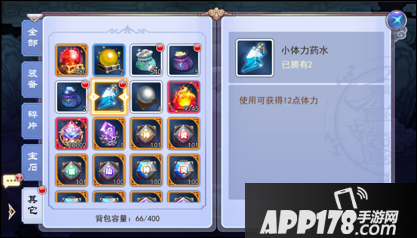 游戏内有一种叫做“体力药水”的道具,玩家使用体力药水之后,可以获得一定的体力。玩家可以通过游戏内“奇珍阁”、“促销”“符鬼生产”(需要高级符鬼天赋)等处来获得体力药水。