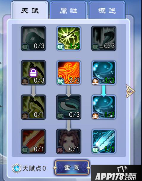 天赋如上图,石龟护甲,强-秋镰游刃,超-秋镰游刃,冯虚御风,封雪刃