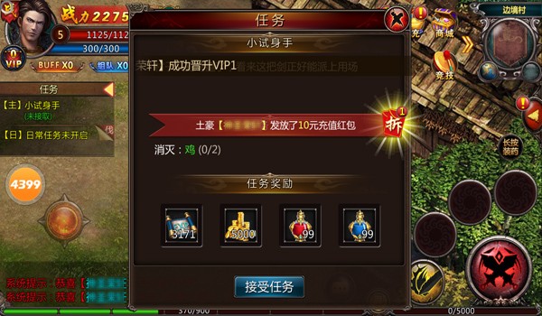 太丧心病狂了!《血饮天下》放出免费红包,红包一出就遭到万人哄抢,手快有,手慢无!玩家抢红包速度达到丧心病狂地步,你与红包的距离就在0.0001秒之间。那么究竟何时放出了抢红包让玩家都变得如此痴狂?小编经过了解发现,在游戏新版本“屠龙神器”上线后,就推出了一个“充值送红包功能”,本期小编就带大家一起抢红包!