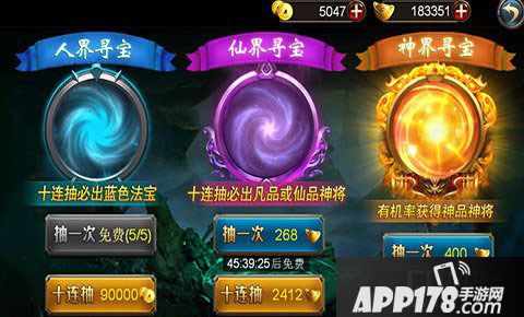 每天都有免费的寻宝机会可以抽取神将和大量神将的碎片。