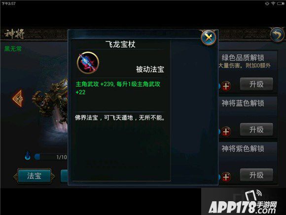 飞龙宝杖:增加主角武攻。(神将紫色解锁)