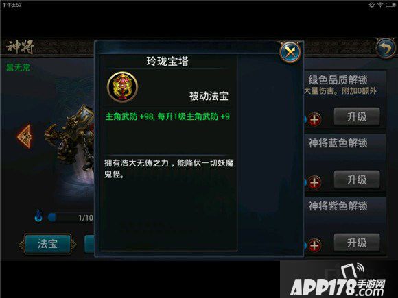 玲珑宝塔:增加主角武防。(神将蓝色解锁)