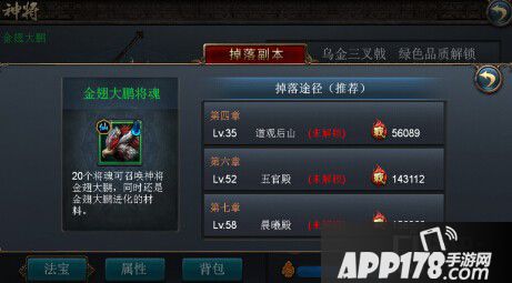 1、 通过副本掉落的神将碎片合成神将