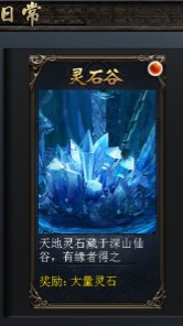 还有一种方法可以获得大量灵石。挑战日常活动中的灵石谷就可以收获大量灵石。小编就是靠每天签到和挑战灵石谷灵石镶满装备的。