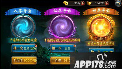 获得神将的途径也有许多,打副本就可以获得大量神将碎片,攒够碎片就可以激活神将了。更加简单的途径当然也是有的,不喜欢消耗体力打副本的玩家呢,可以通过幻境寻宝获得!有几率直接获得神品神将。装备神品神将可以激增上万战力哦~