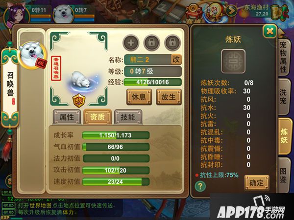玩家在主线关卡当中会得到各类型的炼妖石。通过炼妖,玩家可以提升召唤兽的各类抗性。但是要注意的是,召唤兽自身的抗性上限不能超过75%。