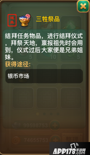 2、所有成员同意结拜后,然后主簿的要求收集一些道具物品,完成这些之后就能进入下一步;