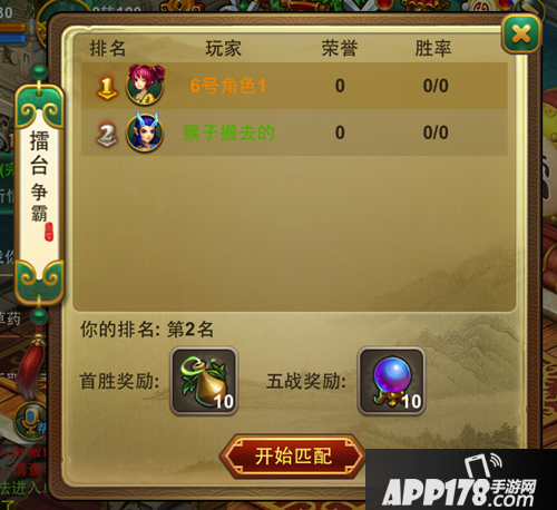 擂台争霸中显示本次活动的排名,排名的规则按胜率而定,胜率越高排名越靠前。