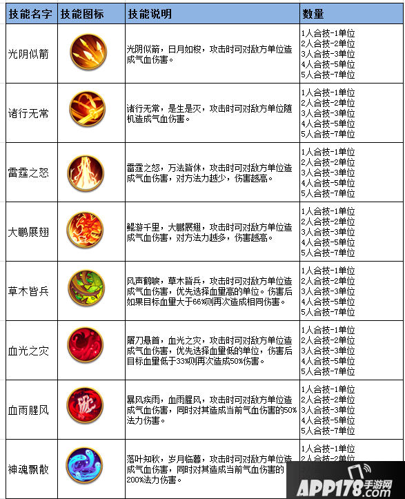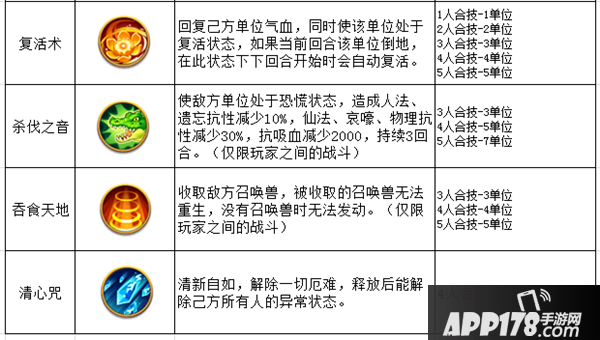 被动法宝的技能随合击人数而变化,合击人数越高,威力越大。