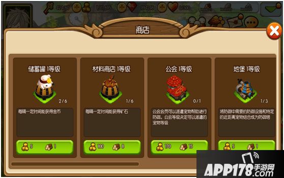 建造增益塔对各种战斗会有很大的帮助,选择城堡商店可以找到增益塔,赶快来建造属于你自己的增益塔吧!点击建筑可以看到建筑的详细属性。强化攻击力增益塔时,在所有战斗中可以获得增加攻击力的效果。
