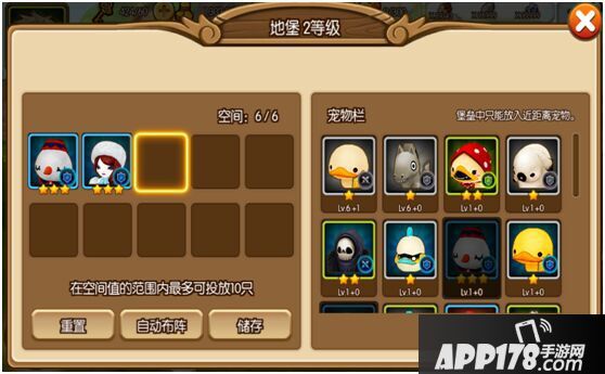 根据空间值放入我的宠物,宠物等级不同,空间值不同。根据空间最多可以放入10只宠物。