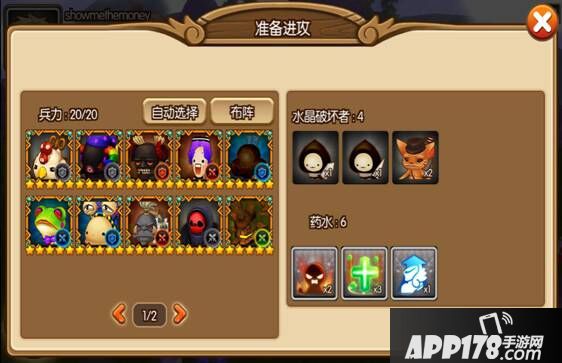 点击进攻后就要进行进攻前的准备,在这里可以用自己的宠物来就行城堡战。自己的城堡等级越高,可以布阵的宠物越多。另外只有在训练营已经生产好的佣兵和药水时,这里才能使用。还好小编机智,早早的就囤积了好多雇佣兵,这下子终于可以派上用场啦!n(*≧▽≦*)n