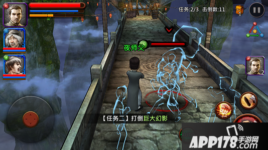 第二个任务巨大幻影(防御型),幻影没有特殊能力,用力量型武师积攒怒气普功击杀即可。