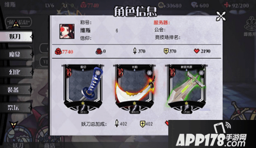 在主界面,能看到等级、金钱、钻石、体力值等信息,以及妖刀、商店等功能。随着级别的提升,功能也会不断开放,敬请期待~