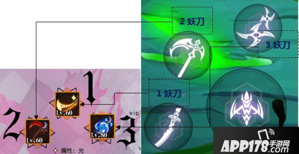 妖刀系统有3个主要上阵位,这3个位置直接影响玩家在战斗中使用技能的效果。而妖刀中有很多种不同效果,代表了不同技能,也就是玩家不同的妖刀搭配可以得到不同的战斗效果,自然有不一样的战斗体验。
