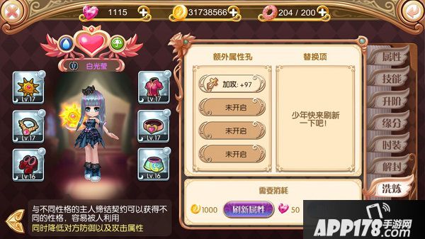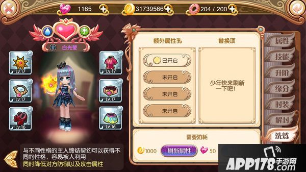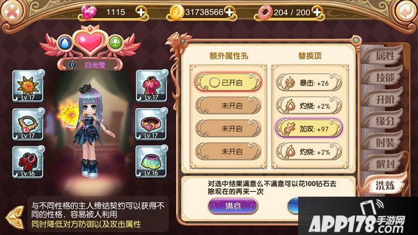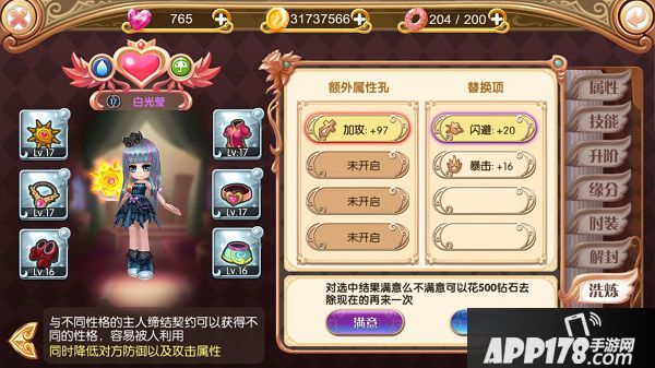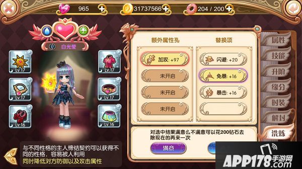 不满意属性的话,第一次可以消耗100钻重新在除已选中的属性外的三个属性内继续选,直到获得你想要的属性,但是重选次数越多消耗钻石越多哦!