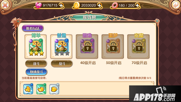摇钱树14级开启,每日0点重置,每天可打三次,如果通关3颗星就可以选择快速战斗,略过战斗过程为你节省更多时间。