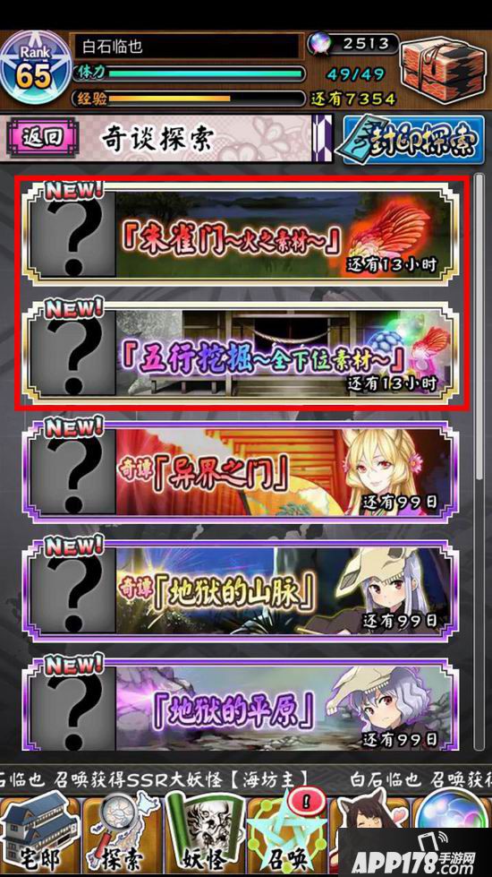 5.成长谭 (有部分成长谭会掉落素材妖怪,净化后可以取得大量素材,有遇到千万别放过机会)