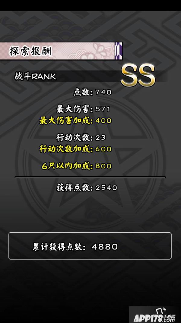依据关卡不同,要求的行动回数会不一样,最高获得基础分数的4倍分数,行动次数越少分数越高。列入行动次数计算的有普通攻击、释放妖术、凭依 。