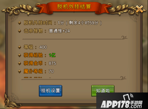 3.玩家上线后,将进行挂机收益的结算。