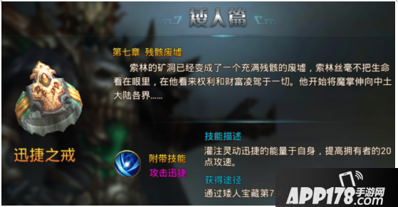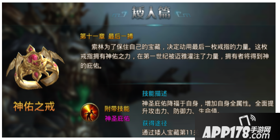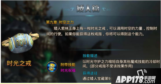 简介:矮人索林王身上有一枚时光之戒,可以调用时空的力量,控制时间的行使。如果你能获得这枚戒指,你将可以得到这个能力。