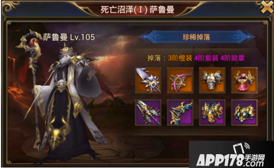 掉落:橙色烈焰之剑、橙色蔷薇烈焰、橙色轻钢护甲、橙色贵族战甲、紫色奥拓锻剑、紫色月影之击、紫色御敌钢甲、紫色绯耀战袍。