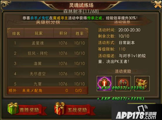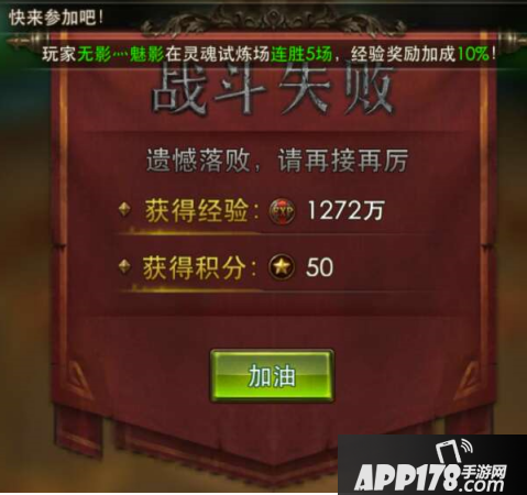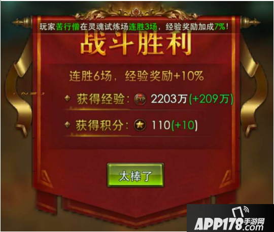 3、战斗胜利和战斗失败都有奖励,但是胜利获得的经验和积分要比失败的高,而且连胜场数越多,奖励越丰厚。