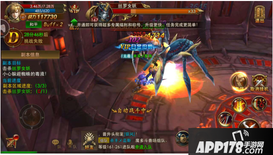 3、boss出来后,大家就可以进入狂殴boss模式了!在打boss 的时候,注意小心躲避蜘蛛的毒液哟!