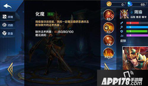 三技能化魔,开启后普攻附带魔法伤害,即魔法+物理的混合伤害,周瑜后期连招,2+1+大招,开启化魔后AAA,随便杀,值得一提的是开启/关闭化魔,都可以触发恶魔皇冠的被动,合理运用,事半功倍!