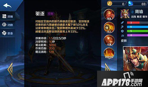 一技能驱逐,减速目标50%且减速期间无法进行物理攻击,受到魔法伤害增加33%,物理伤害减少33%,持续3秒,射手被周瑜驱逐基本到只能跑,蓝瘦香菇。配合法师群伤害特别恐怖,同时手游版英魂里驱逐的弊端也得到改善,物理攻击不再无法造成伤害,而改为减少33%,等于说把驱逐的上限和下限同时拉高,非常猛的神级控制技能,前期副加无疑问!