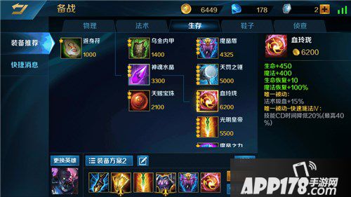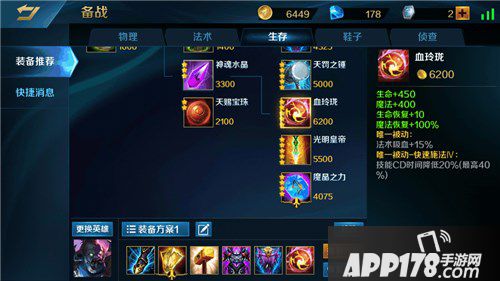 最后一件装备选择血玲珑增加自身的生命和魔法值及其回复能力。