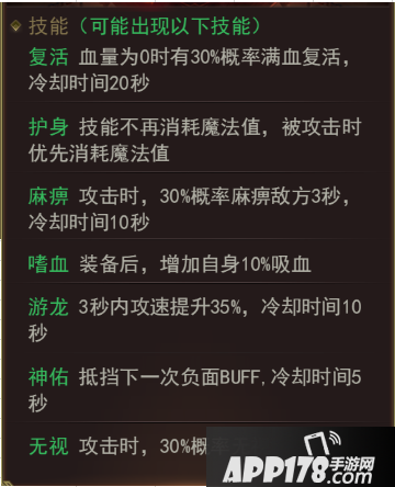 首先特戒分为复活、护身、麻痹、嗜血、游龙、神佑和无视这7个类别,每一种都有自己的不同技能!大家可以根据自己的职业特点和技能来搭配不同的特戒使用,具体的技能如下图!
