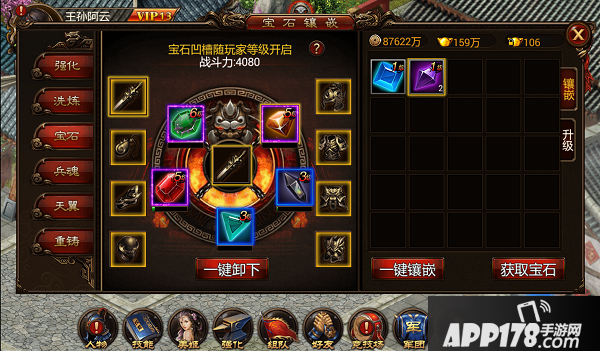 3.要将每个部位的宝石镶嵌满,再升级宝石。