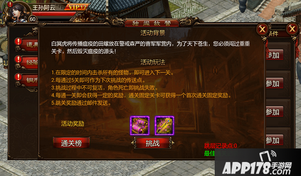 2. 每通关5关即可作为下次挑战的传送点;