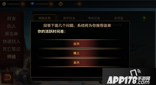 2、 完成任务后,师傅可以获得教学成绩,徒弟可以获得丰厚的任务奖励。