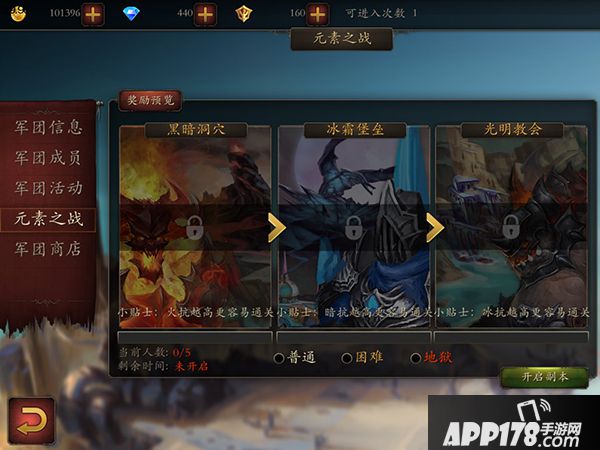 - 军团等级需达到2级,副本由军团长或副团长花费军团资源开启,并由开启者选择副本难度。