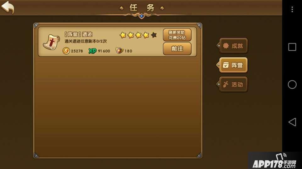 至于每天的阵营任务我觉得没有必要拿钻石强行刷出全部五星, 四星就够了。免费刷新8次应该可以全部刷出4星的。 大家可以注意一下,4星和五星的奖励差距也不是很大。 当然高V玩家可以全部刷出五星。