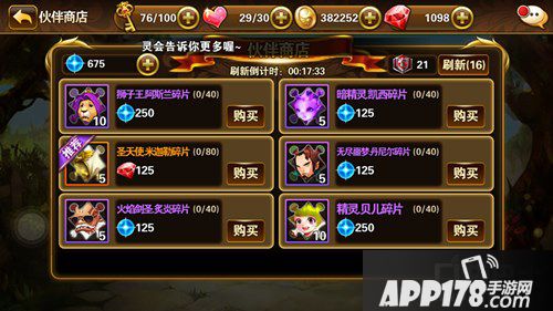 2.商店获得,在商店系统里的伙伴商店里获得伙伴。每次伙伴商店里,展示的都是伙伴碎片,集满足够的碎片才能开启新伙伴哦!钥匙本页六个伙伴没有你想要的,就只有使用刷新令刷新哦,系统也有自动刷新时间。