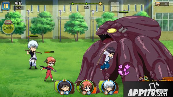 每场战斗的前后都会重温过场动画,这是小编我觉得是本作最有亮点的地方。细腻的台词对白以及生动的剧情画面,特别在游戏的技能特效上,每个技能都有原作出处,华丽的效果配合上原作名梗,真是勾起小编我对银魂满满的回忆。在此小编只想说,这波情怀鸡汤,给多少碗我都吞!