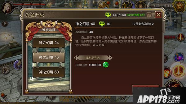 神之幻境副本分20级、40级、60级、80级四个等级段开放,越高等级开放的副本所获得的经验越丰厚,每一等级段副本每天可以挑战3次,每次挑战副本需要消耗20点体力。
