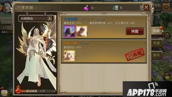 神灵分为5档,分为白、绿、蓝、紫、橙,橙品最好,每张神灵能够对应提升一定的人物战力。