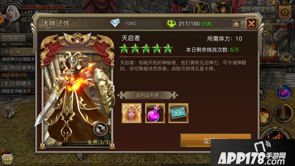 诸神试炼诸神试炼为单人挑战副本,在副本中战胜诸神即可获得对应的诸神卡牌。