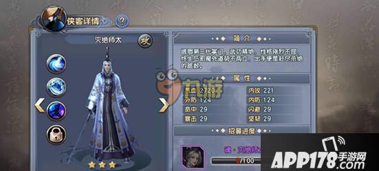 灭绝师太是一个伤害非常高的侠客,但是他自身身板比较脆弱,是一个绝对的伤害型侠客。