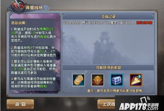 (PS:阵营盟主可自行设定提前入场条件,符合条件的玩家可提前进入阵营战场准备)