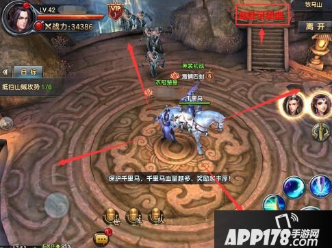 牧马山副本是42级获取马草与培养丹的特色副本,玩家需组队挑战,副本奖励结算时依照所保护千里马剩余血量多少给予,组成4人同时进本,兵分四路阻挡山贼进攻,更容易获取高奖励(抵挡完每轮攻击后,别忘记去右上角处补充血量再战)