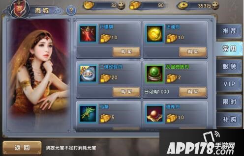 最直接的当然是商城值直接花费绑元购买,不要以为这是大R玩家的天下,绑元在游戏中获取方式非常容易,适当够买马草与培养丹也是前期提升战力的不错选择