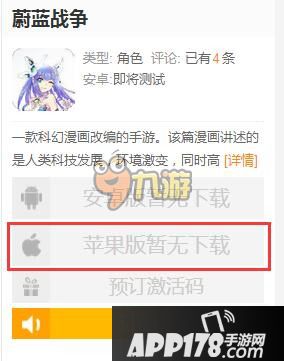 这款好玩的游戏在哪里可以下载到iOS版呢?想要在第一时间下载到蔚蓝战iOS当然要来APP178手游,APP178手游蔚蓝战争在游戏上线的第一时间为各位玩家提供iOS下载,如图所示,如果iOS版上线了的话,会第一时间在专区上显示哦!到时候你就可以下载了,是不是很方便呢?