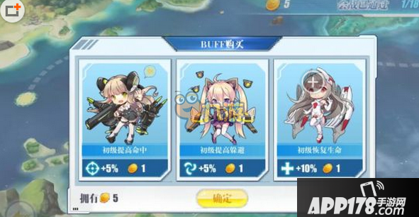 根据己方战舰实力及剩余血量选择难度,但请尽量选择困难难度,不仅增加BUFF硬币的获取。击败敌人后会随机掉落宝箱(可以开出改造核心和增加好感度的礼物)。