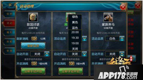 2,由族长或者副族长手动开启,或者设置时间自动开启。