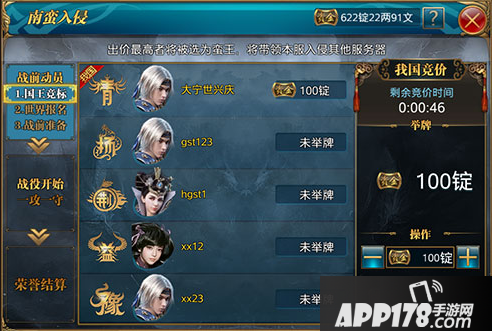 【2】竞标为暗拍;出价最高者在竞标结算时会成为蛮王,蛮王所属国家拥有最多的南蛮参与名额。